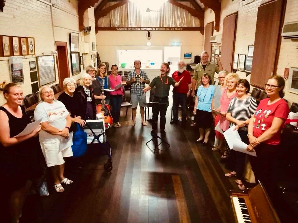 Crowd Around Choir is well established in the Mid Mountains and has been directed by Kate Swadling for many years. Currently Rob Maxwell Jones also directs the Choir with Kate. Repertoire is varied (great pop songs, fun African, beautiful folk, rousing songs of solidarity) and chosen carefully to suit this group of people. The aim – to enjoy a good sing and sound great together.
