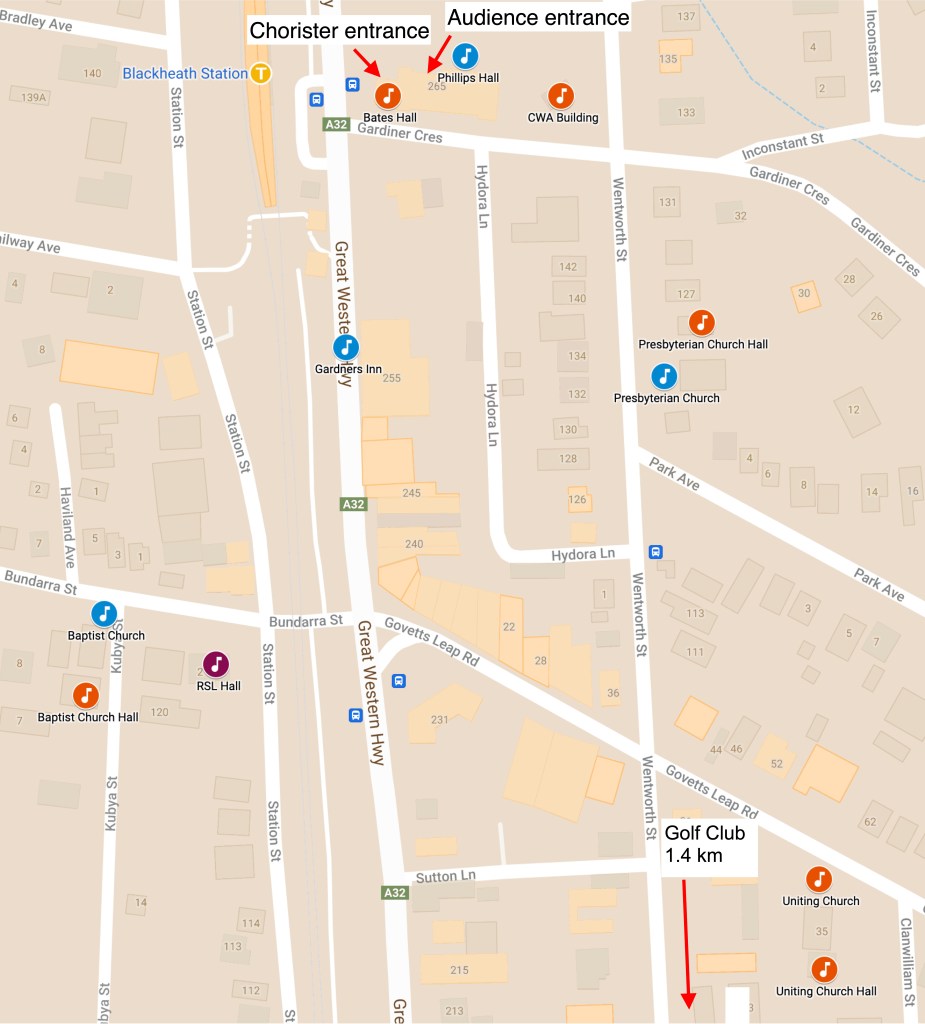 - Bates Hall, 265 Great Western Highway (enter from Blackheath Gardens)